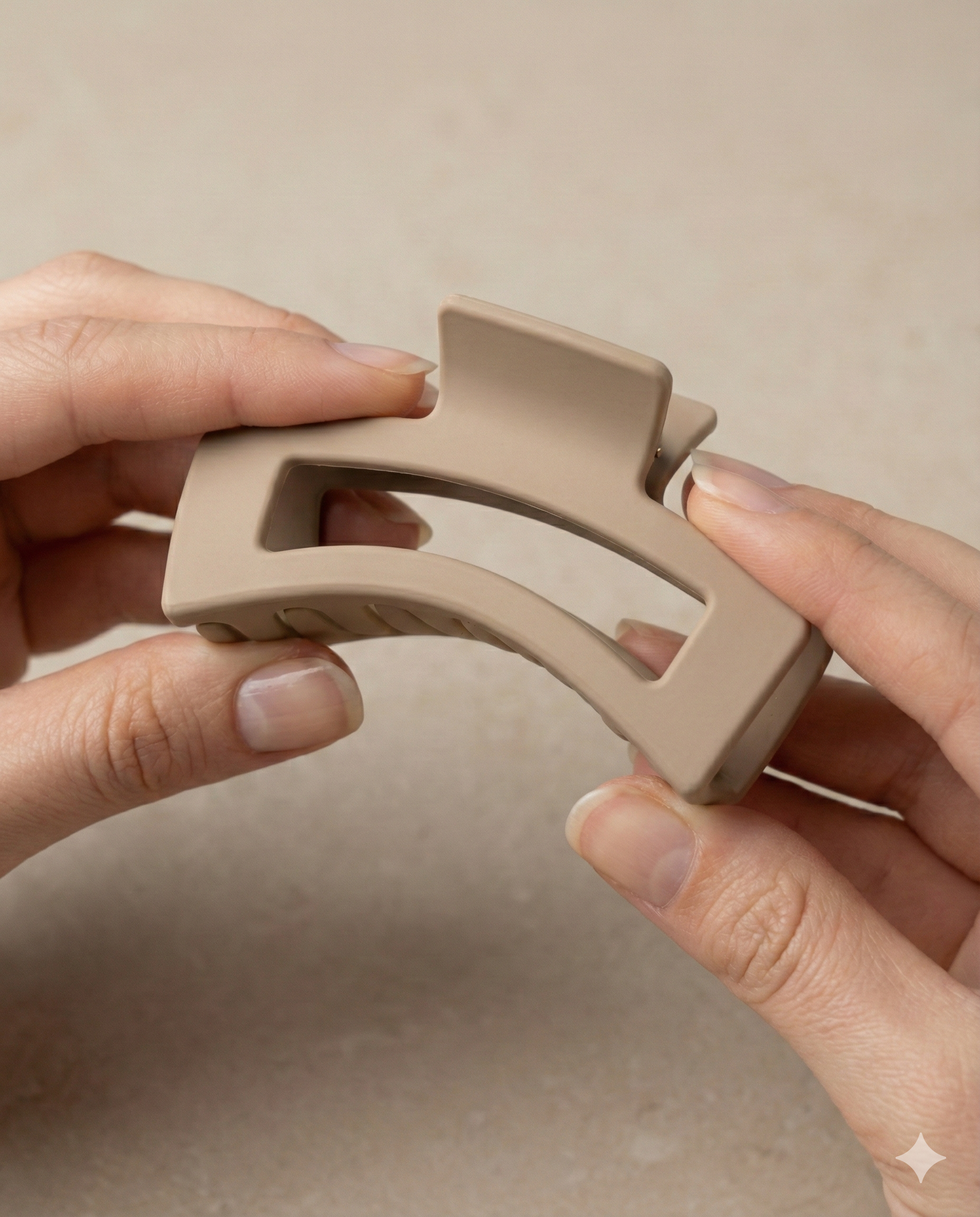 Traditional claw clips are made from rigid plastic that doesn’t adapt to the natural curve or movement of your head. That rigidity creates pressure points, especially at the base of the skull, which leads to scalp soreness, tension, and that familiar end-of-day discomfort that creeps into your neck.